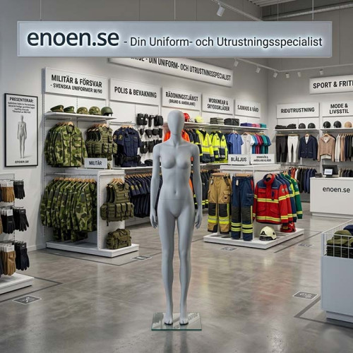 Tags: skyltdocka, dammannekäng, workwear, uniformsdocka, svensk militärutrustning, hållbar display