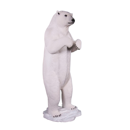 En storslagen och realistisk stående isbjörn-staty i naturlig storlek, hela 213 cm hög. Denna imponerande skulptur är tillverkad i högkvalitativt glasfiber (förstärkt polyester) vilket gör den både hållbar och väderbeständig. Den fungerar perfekt som konstverk (art), reklamdisplay eller blickfång. Ett måste för alla som söker en stor isbjörnsskulptur för event, mässor eller butiker.