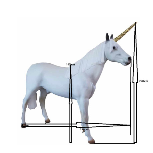 Skapa en oförglömlig syn med vår majestätiska enhörning i naturlig storlek. Denna högkvalitativa glasfiberskulptur är en perfekt reklampelare för företag, ett magiskt inslag i trädgården eller en oförglömlig rekvisita för event och mässor.