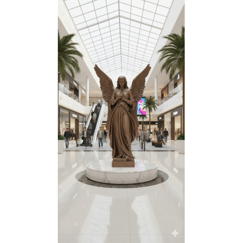 Tillverkad av högkvalitativt och förstärkt glasfiber och målad med miljövänlig akrylfärg, är denna skulptur designad för att vara både vacker och hållbar. Dess detaljerade utformning fångar ängelns lugna och beskyddande närvaro.
