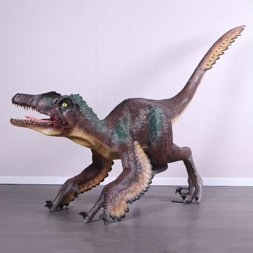 Denna otroligt realistiska Velociraptor Glasfiberfigur rekvisita mäter imponerande 251 cm. Den är en omedelbar blickfångare och en utmärkt investering för alla som vill skapa en minnesvärd miljö. Idealisk som centralt fotobjekt på torg, vid entréer, i gallerior eller som en permanent utställningsdel i museer, teater och parker. Glasfibermaterialet garanterar hållbarhet och klarar både inomhus- och utomhusmiljöer. Beställ din egen dinosaurie idag