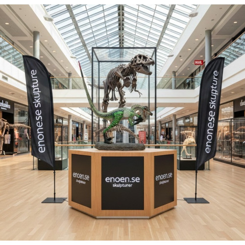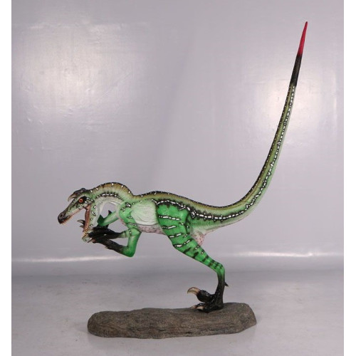 Denna otroligt detaljerade Velociraptor-dinosaurieskulptur i slitstark glasfiber är den ultimata displaylösningen. Den är perfekt för att locka besökare och kunder till ditt museum, teater, företag, galleria, torg, park, butik eller event.