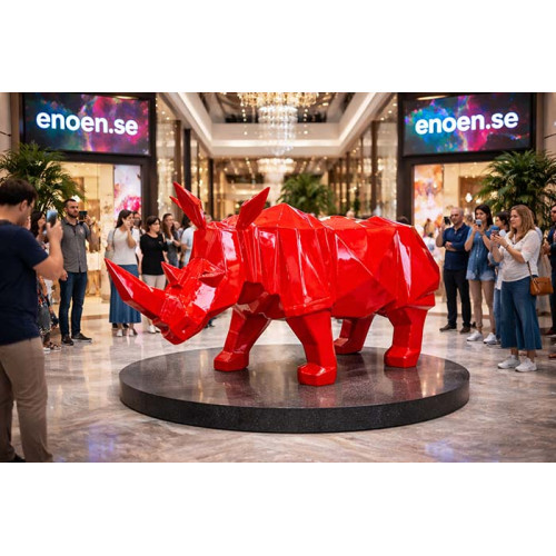 Gör din verksamhet till en destination Möt rummets ohotade stjärna – vår majestätiska, 2 meter långa röda noshörning. Denna skulptur förenar djärv popkonst med strategisk marknadsföring. Det är inte bara en figur; det är en visuell magnet designad för att uppmuntra till fotografering, selfies och omedelbar delning i sociala medier.