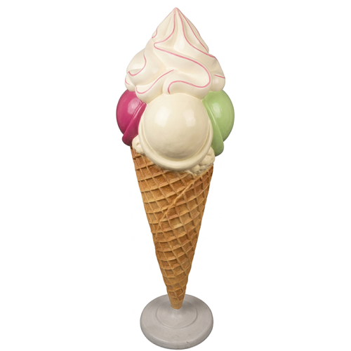Bli ett landmärke med en 220 cm hög Glasskulptur! Konkurrensen på glassmarknaden är stenhård. Vill du att din verksamhet ska synas på långt håll och locka till sig glassugna kunder oavsett var ni befinner er? Denna majestätiska, 220 cm höga glassfigur med 3 aptitretande kulor och läcker chokladdripp på toppen är den ultimata reklamdisplayen för all typ av glassförsäljning. Tillverkad i kraftigt, väderbeständigt glasfiber är detta en investering som betalar sig själv genom ökad spontanförsäljning.