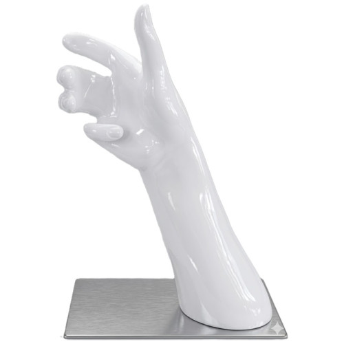 Denna skyltdocka hand fungerar som en kraftfull visuell säljare – den drar blickar till sig och skapar en professionell och stilren känsla i alla miljöer.