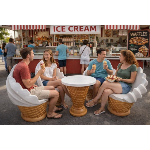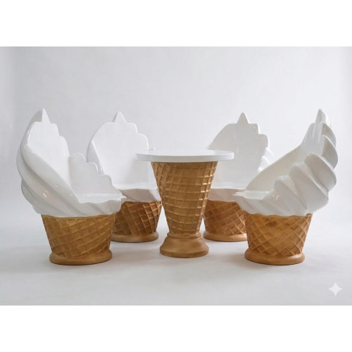 Öka försäljningen med en oförglömlig kundupplevelse! Vill ni att ert glasscafé, er galleria eller ert event ska sticka ut från mängden? Vår unika sittgrupp med bord och stolar i glassdesign är den ultimata investeringen för att dra till sig blickar, barnfamiljer och köpsugna kunder. Detta är inte bara butiksinredning – det är en säljande reklamdisplay och ovanlig modern konst i ett, som garanterat kommer att fotograferas och spridas i sociala medier.